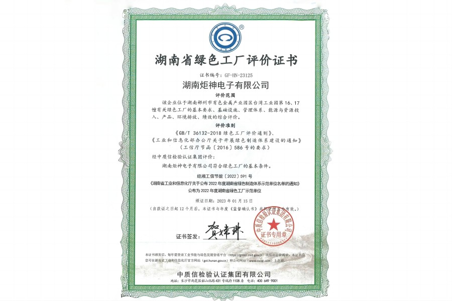 湖南省綠色工廠評價(jià)證書